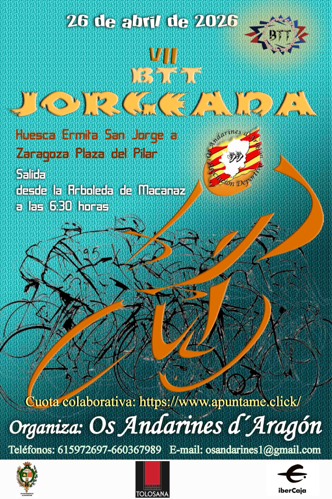 El próximo domingo 27 de abril de 2025 se celebrará la VIIº BTT JORGEADA, cicloturista organizada por Os Andarines d’Aragón.